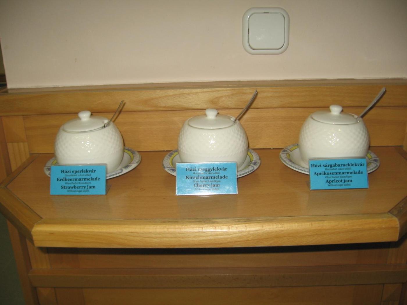 A selection of options including juice and cheese is available for the buffet breakfast.