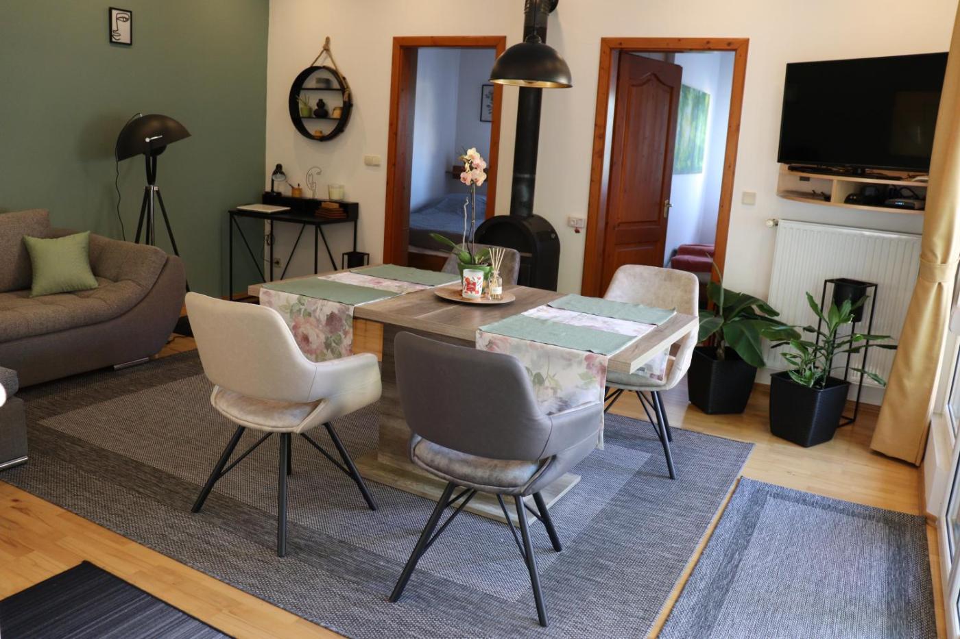 Nyugi-Lak is situated in Lipót and offers a garden. The property featurescourtyard and quiet street views. There is a childrens playground and guests can make use of free WiFi and free private parking.